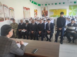 Раиси Суди ноҳияи Шаҳритус Холдорзода Х.З. санаи 25 феврали соли 2026 дар Муасисисаи ғайри давлатии таълими Колеҷи тиббӣ-иҷтимоии ноҳияи Шаҳритус вобаста бо парвандаи ҳуқуқвайронкунии маъмури нисбати Суванов Меҳрубон Ҷурабекович бо моддаи 474 иловаи 1 қисми 1 КҲМ Ҷумҳурии Тоҷикистон, бо иштироки донишҷуён ва омузгорон маҷлиси сайёри суди гузаронида, ҳамзамон дар баробари ин, бо мақсади амалӣ намудани корҳои фаҳмондадиҳӣ роҷеъ ба хатару таҳдидҳои замони муосир ва оқибатҳои ногувори даст задан ба ҷиноятҳои хусусияти террористию экстремистидошта суҳбату вохўриҳои фаҳмондадиҳӣ баргузор намуданд.